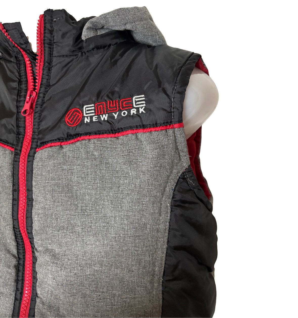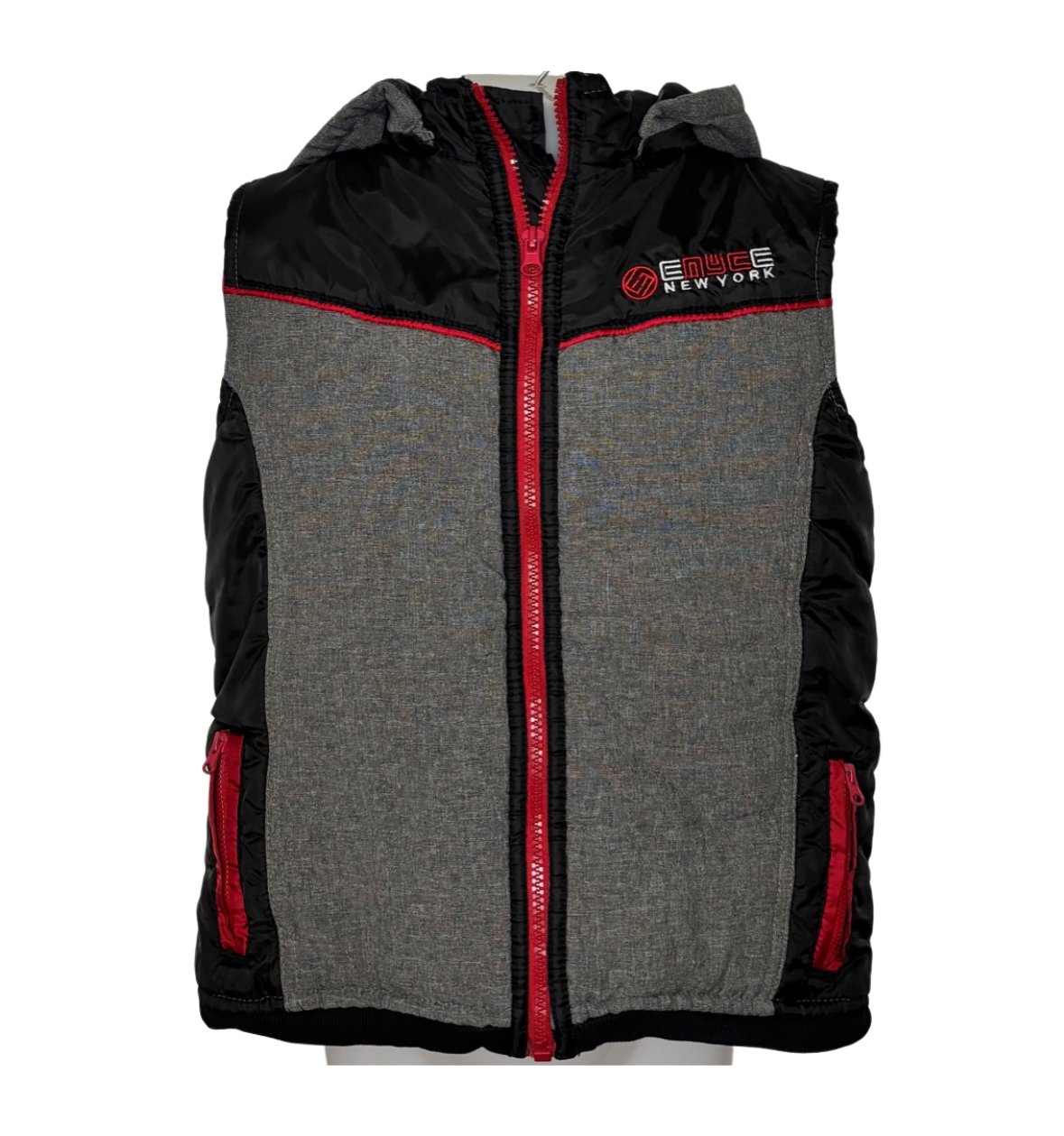 ENYCE New York Boys Puffer Vest Size 7 | Black Gray Red | Pre-Owned Kids Outerwear